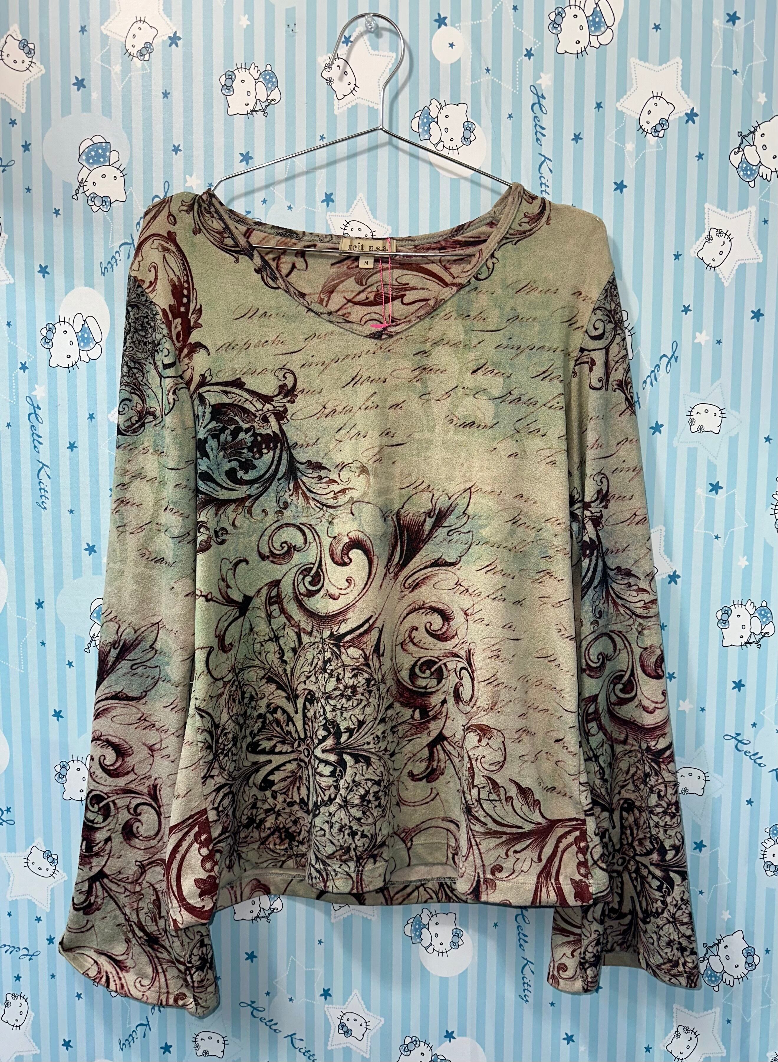 xcit u.s.a. Vintage Baroque Script Sheer Top
